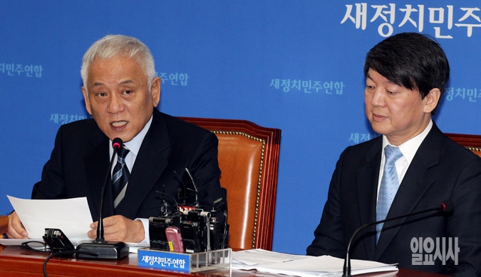 김한길 새정치민주연합 공동대표(왼쪽)가 9일 서울 여의도 국회에서 열린 최고위원회의에서 모두발언을 하고 있다.