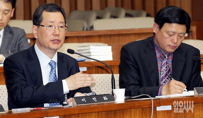 9일 서울 여의도 국회에서 창조경제활성화 특별위원회 주최로 열린 창조경제활성화를 위한 민간부문 의견수렴 공청회에서 이민화 카이스트 초빙교수(왼쪽)가 의원들의 질의에 답하고 있다.