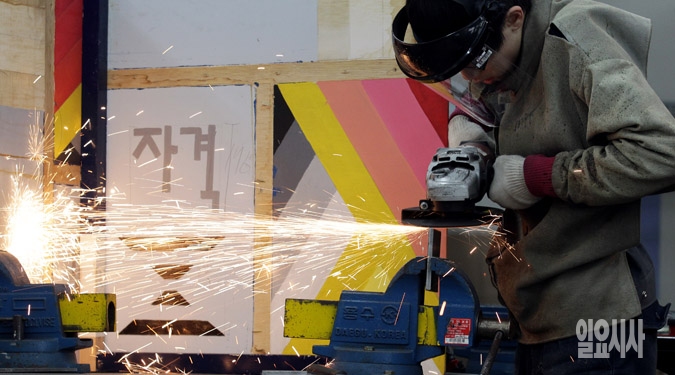 9일 서울 용산공업고등학교에서 열린 제49회 서울특별시 기능경기대회에 참가한 학생들이 그라인딩 작업을 하며 기량을 겨루고 있다.