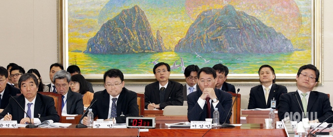 10일 서울 여의도 국회 정무위원회 회의실에서 금융감독체계 개편 및 금융소비자보호기구 설립 등 관련 법률 개정에 관한 공청회가 열렸다. 이날 진술인으로 참석한 정순섭 서울대 법과대학 교수(오른쪽부터), 전성인 홍익대 경제학부 교수, 장민 금융연구원 실장, 윤석헌 숭실대 금융학부 교수가 의원들의 질의를 경청하고 있다.
