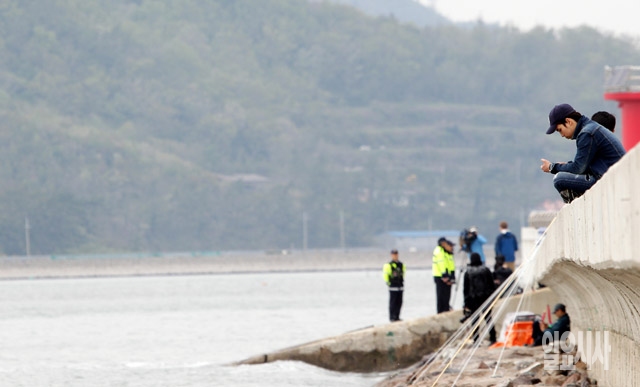 여객선 '세월호' 침몰 나흘째인 19일 전남 진도군 팽목항에서 실종자 가족들이 바다를 바라보며 구조 소식을 기다리고 있다.