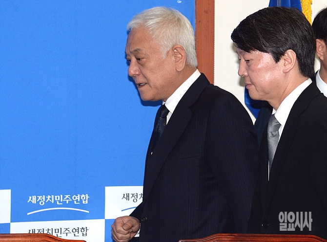 김한길·안철수 새정치민주연합 공동대표가 21일 오전, 서울 여의도 국회에서 열리는 최고위원 및 여객선침몰사고 대책위원장단 연석회의 참석을 위해 입장하고 있다.