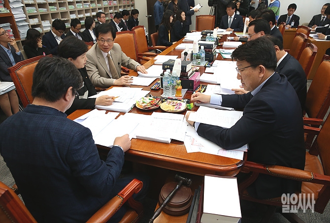 이춘석 소위원장 등 위원들이 22일 오전, 서울 여의도 국회 법제사법위원회 법안심사 제2소위에서 공직선거법 등 법안을 심의하고 있다.