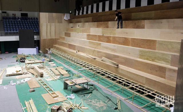 여객선 '세월호' 침몰 7일째를 맞고 있는 22일 사고로 희생된 안산 단원고등학교 학생들을 위한 임시 합동분향소가 경기도 안산 올림픽기념관에 마련되고 있다.