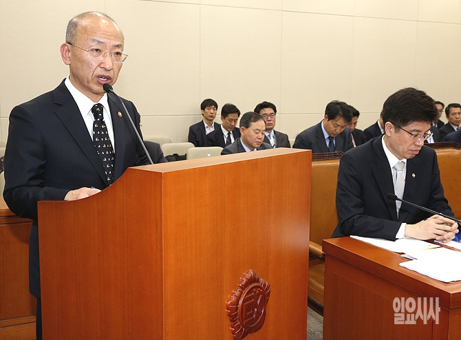 23일 오후, 문형표 보건복지부 장관이 서울 여의도 국회에서 열린 보건복지부 전체회의에서 업무보고하고 있다.
