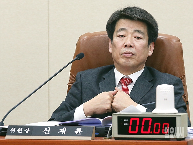 23일, 신계륜 환노위원장이 서울 여의도 국회에서 열린 환노위 전체회의 도중 잠시 생각에 빠져 있다.