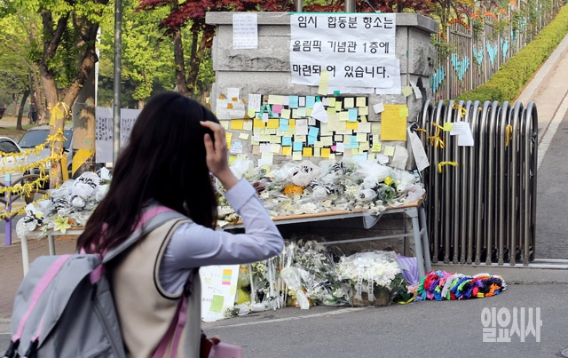 세월호 참사 직후 임시 휴교 중인 경기 안산 단원고가 24일 수업을 재개한 가운데 3학년 학생들이 등교를 하고 있다.