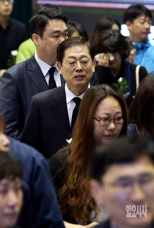 김황식 새누리당 서울시장 예비후보가 24일 경기도 안산 올림픽체육관에 마련된 합동분향소를 찾아 조문하고 있다.