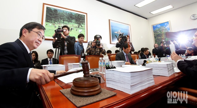 25일 서울 여의도 국회에서 열린 농림수산식품해양수산위원회 법률안심사소위에서 경대수 위원장이 의사봉을 두드리고 있다.