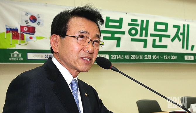 28일 오전, 서울 여의도 국회에서 새정치민주연합 심재권 의원이 '북핵문제, 어떻게 할 것인가' 토론회 직전 인사말을 하고 있다.