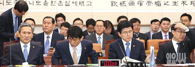 28일 오후, 서울 여의도 국회에서 법제사법위원회 전체회의가 열린 가운데, 황교안 법무부장관 등이 답변을 위해 출석해 있다.