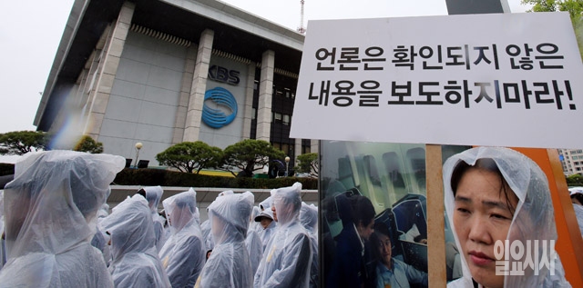 기독교복음침례회(일명 구원파) 신도들이 28일 서울 여의도 KBS 본관 앞에서 정부·언론 공정성 촉구 집회를 갖고 있다.