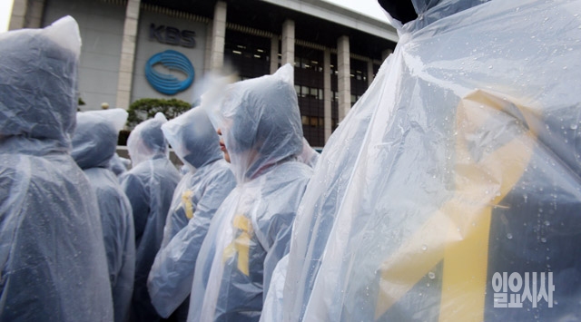 기독교복음침례회(일명 구원파) 신도들이 28일 서울 여의도 KBS 본관 앞에서 정부·언론 공정성 촉구 집회를 갖고 있다.