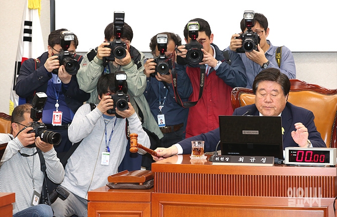 최규성 국회 농림축산식품해양수산위원장이 28일 오후, 서울 여의도 국회에서 열린 농림축산식품해양수산위 전체회의에서 개회를 알리는 의사봉을 두드리고 있다.