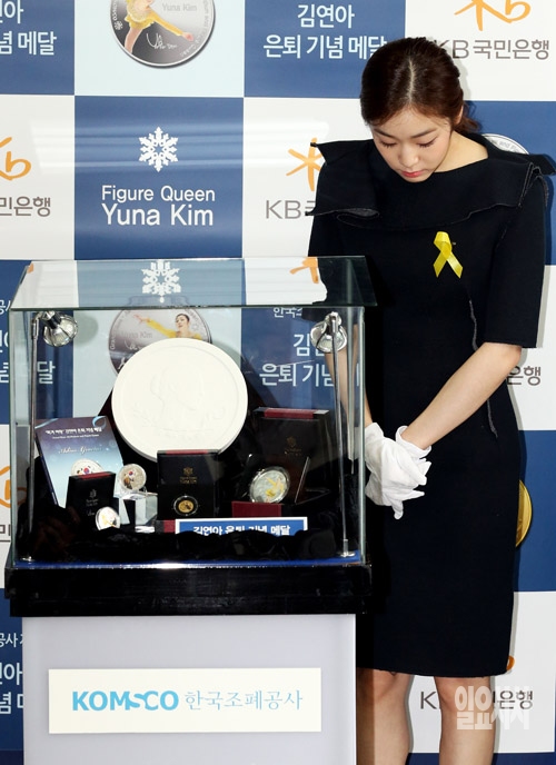 피겨스케이팅 김연아 선수가 28일 서울 마포구 한국조폐공사에서 은퇴 기념 메달을 공개하고 있다.