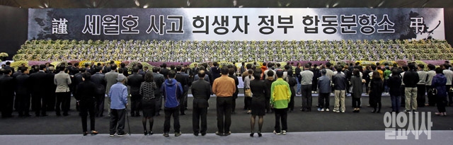29일 경기 안산 화랑유원지에 마련된 세월호 사고 희생자 정부 합동분향소를 찾은 추모객들이 조문을 하고 있다.