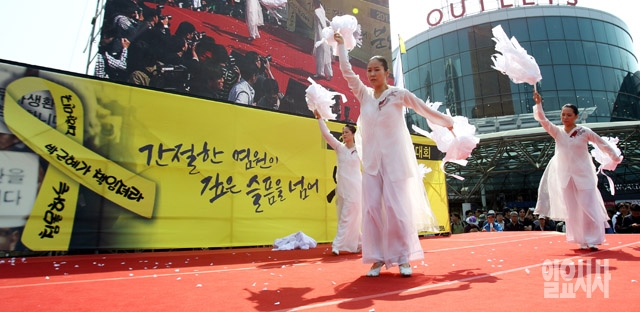 근로자의 날(노동절)인 1일 서울역 앞 광장에서 열린 세계노동절대회에서 세월호 희생자에 대한 추모공연이 펼쳐지고 있다.
