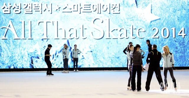 피겨여왕 김연아를 비롯한 선수들이 2일 서울 방이동 올림픽공원 체조경기장에 마련된 특설 아이스링크에서 열린 아이스쇼 '삼성 갤럭시★스마트에어컨 올댓스케이트 2014' 연습 리허설 공개에서 공연 준비를 하고 있다.