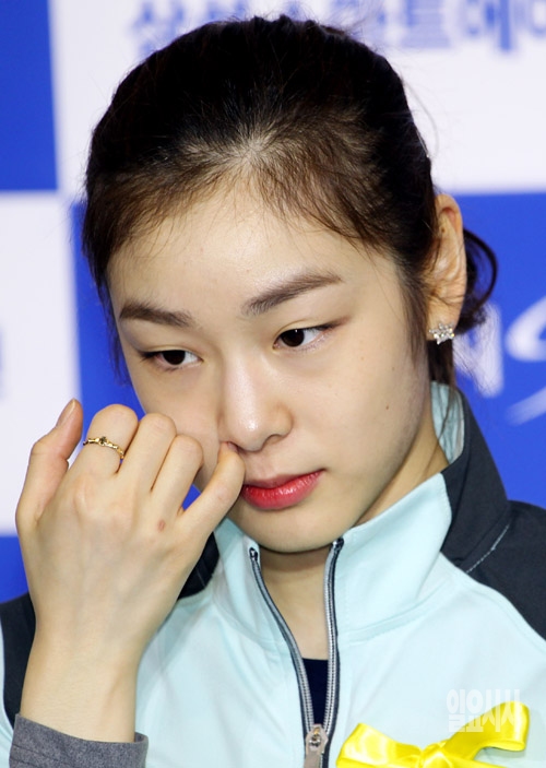 피겨여왕 김연아 선수가 2일 서울 방이동 올림픽공원 체조경기장에 마련된 특설 아이스링크에서 열린 아이스쇼 '삼성 갤럭시★스마트에어컨 올댓스케이트 2014' 연습 리허설 공개를 마친 뒤 기자회견을 갖고 있다.