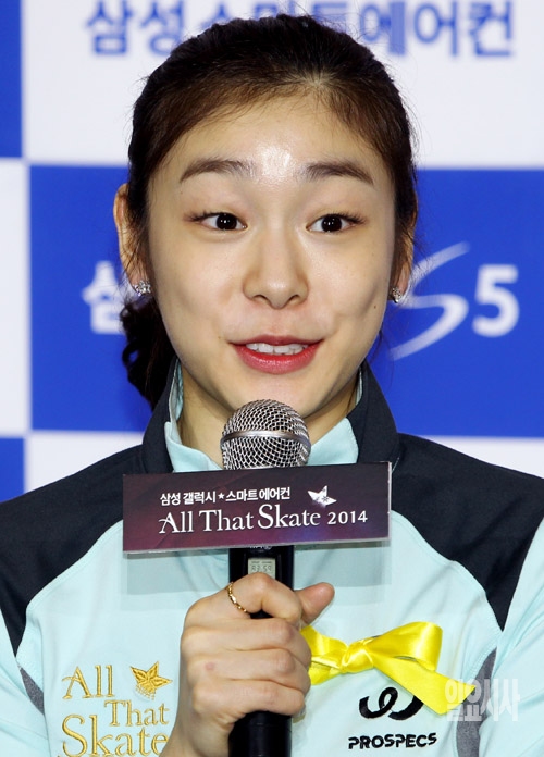 피겨여왕 김연아 선수가 2일 서울 방이동 올림픽공원 체조경기장에 마련된 특설 아이스링크에서 열린 아이스쇼 '삼성 갤럭시★스마트에어컨 올댓스케이트 2014' 연습 리허설 공개를 마친 뒤 기자회견을 갖고 있다.
