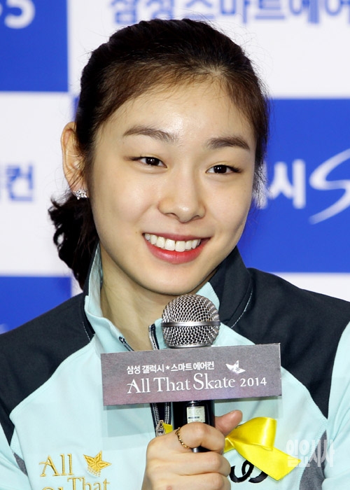 피겨여왕 김연아 선수가 2일 서울 방이동 올림픽공원 체조경기장에 마련된 특설 아이스링크에서 열린 아이스쇼 '삼성 갤럭시★스마트에어컨 올댓스케이트 2014' 연습 리허설 공개를 마친 뒤 기자회견을 갖고 있다.