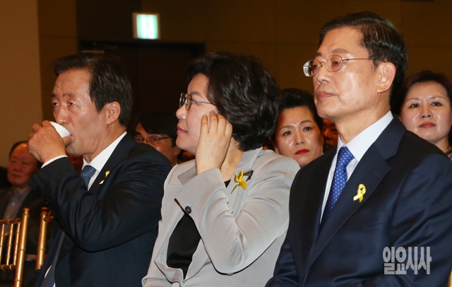 2일 서울 영등포구 당산 그랜드컨벤션센터에서 열린 새누리당 서울시장 후보자 정책토론회에서 정몽준(왼쪽부터), 이혜훈, 김황식 후보가 참석해 자리하고 있다. (사진공동취재단)