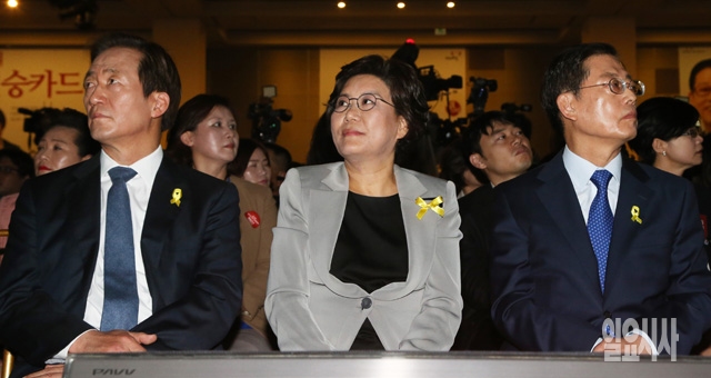 2일 서울 영등포구 당산 그랜드컨벤션센터에서 열린 새누리당 서울시장 후보자 정책토론회에서 정몽준(왼쪽부터), 이혜훈, 김황식 후보가 참석해 자리하고 있다. (사진공동취재단)