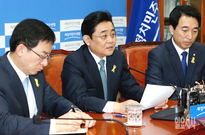 7일 오전, 새정치민주연합 전병헌 원내대표가 서울 여의도 국회에서 열린 원내대표 퇴임 간담회에서 발언하고 있다.