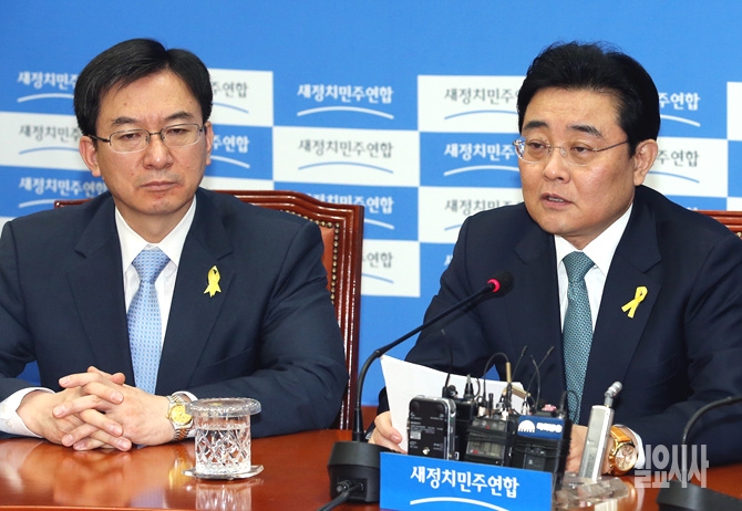 7일 오전, 새정치민주연합 전병헌 원내대표가 서울 여의도 국회에서 열린 원내대표 퇴임 간담회에서 발언하고 있다.