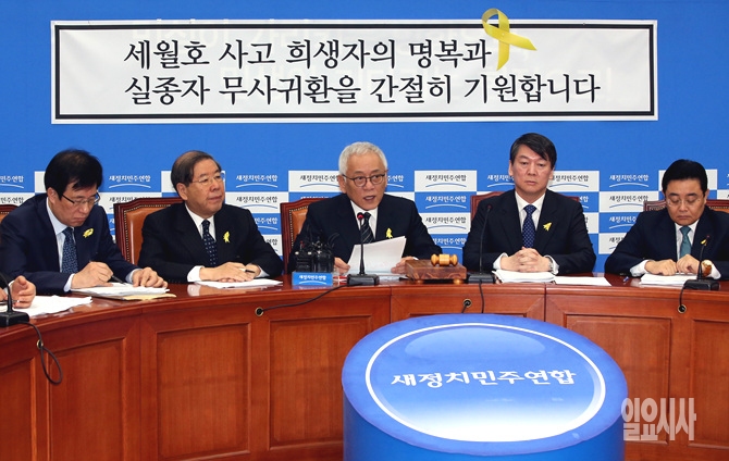 7일, 서울 여의도 국회에서 열린 새정치민주연합 최고위원-여객선 침몰사고대책위 연석회의에 김한길 공동대표가 발언하고 있다.
