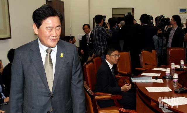 최경환 새누리당 원내대표가 8일 서울 여의도 국회에서 열린 국가재난안전 확대최고회의에 참석하고 있다.