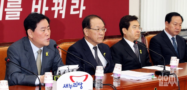 최경환 새누리당 원내대표(맨 왼쪽)가 8일 서울 여의도 국회에서 열린 국가재난안전 확대최고회의에서 모두발언을 하고 있다.