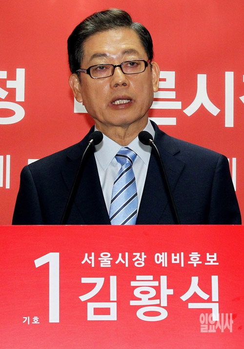 김황식 새누리당 서울시장 예비후보가 9일 서울 여의도 캠프에서 경선을 3일 앞두고 각오를 밝히는 기자회견을 하고 있다.