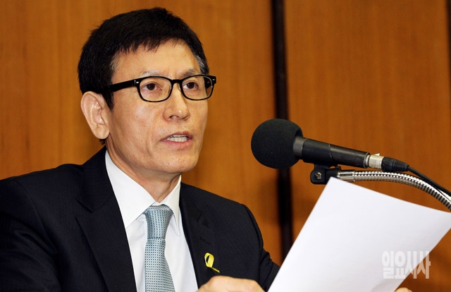 김시곤 KBS 보도국장이 9일 서울 여의도 KBS 신관에서 기자회견을 열고 입장 표명을 하고 있다. 이날 김 국장은 세월호 사고 희생자와 교통사고 사망자 수를 비교한 발언과 관련해 파장이 일자 기자회견을 갖고 사의를 밝혔다.