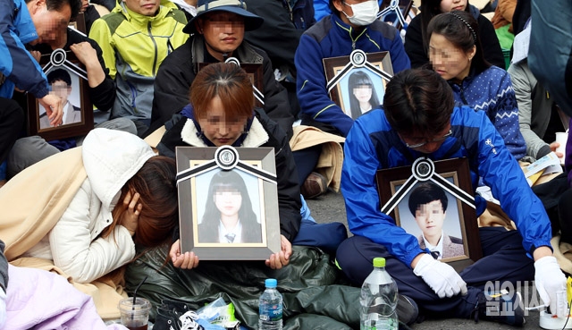 세월호 참사 유가족들이 9일 서울 종로구 청운동사무소 앞 청와대 입구에서 박근혜 대통령과 면담을 요구하고 있다.
