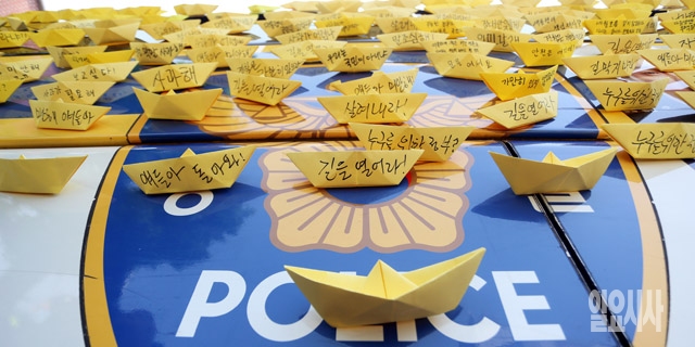 [포토] 경찰 버스에 붙은 노란 종이배