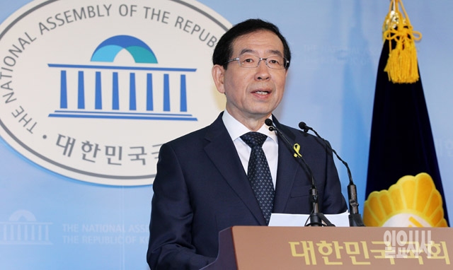 박원순 서울시장이 12일 서울 여의도 국회 정론관에서 기자회견을 갖고 있다.