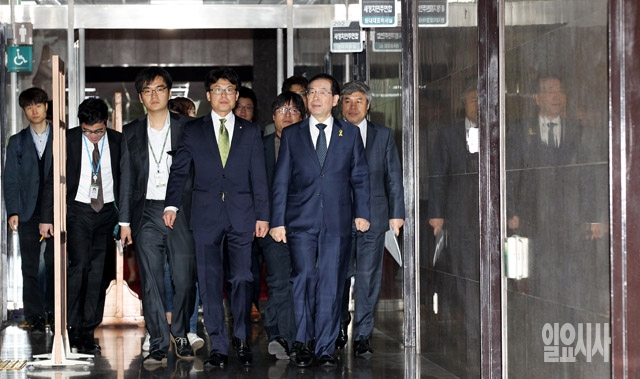 박원순 서울시장이 12일 김한길·안철수 공동대표를 예방하기 위해 서울 여의도 국회 새정치민주연합 당대표실로 향하고 있다.
