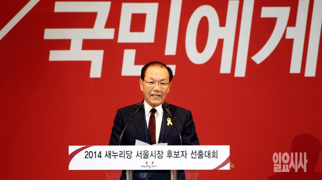 황우여 새누리당 대표가 12일 서울 방이동 올림픽공원 체조경기장에서 열린 2014 전국동시지방선거 새누리당 서울시장 후보자 선출대회에서 인사말을 하고 있다.