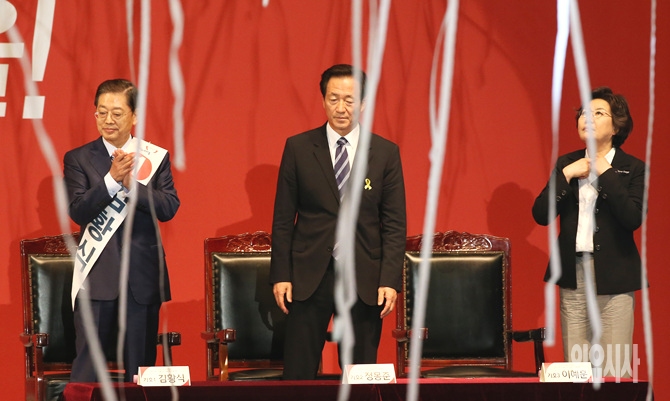 12일, 서울 송파구 방이동 올림픽체조경기장에서 열린 후보자 선출대회에서 새누리당 서울시장 후보를 확정지은 정몽준 후보가 잠시 생각에 잠겨 있다.