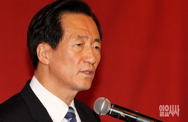 2014 전국동시지방선거 새누리당 서울시장 후보자로 선출된 정몽준 의원이 12일 서울 방이동 올림픽공원 체조경기장에서 열린 기자회견에서 취재진의 질문에 답하고 있다.