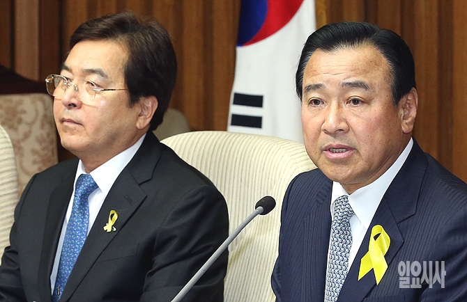 13일 오전, 서울 여의도 국회에서 열린 세월호사고대책특위 연석회의에서 이완구 신임 새누리당 원내대표가 발언하고 있다.