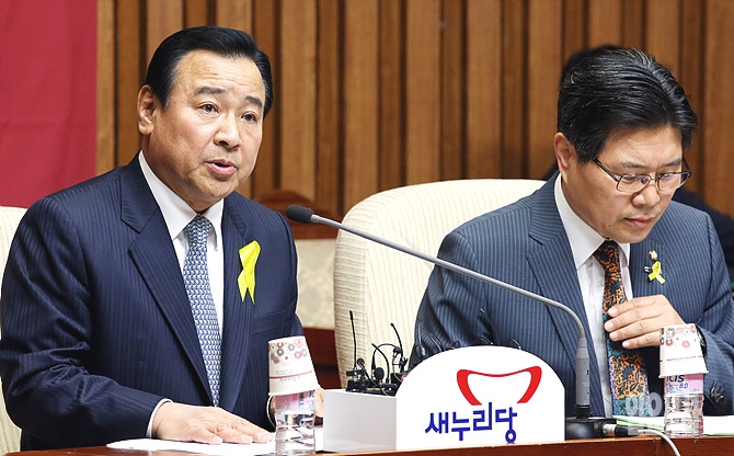 13일 오전, 서울 여의도 국회에서 열린 세월호사고대책특위 연석회의에서 이완구 신임 새누리당 원내대표가 발언하고 있다.