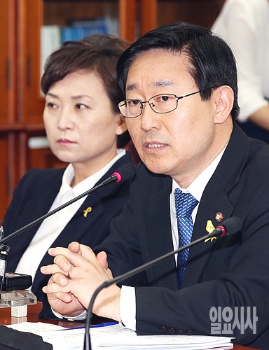 12일, 새정치민주연합 박범계 의원이 서울 여의도 국회에서 열린 6·4지방선거 정책공약집 기자간담회에서 발언하고 있다.