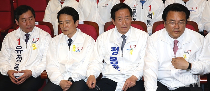 13일 오후, 서울 여의도 국회 의원회관에서 열린 6·4지방선거 중앙선거대책위원회 발대식에 유정복 인천시장 후보, 남경필 경기도지사 후보, 정몽준 서울시장 후보, 정진석 충남도지사 후보가 참석해 있다.