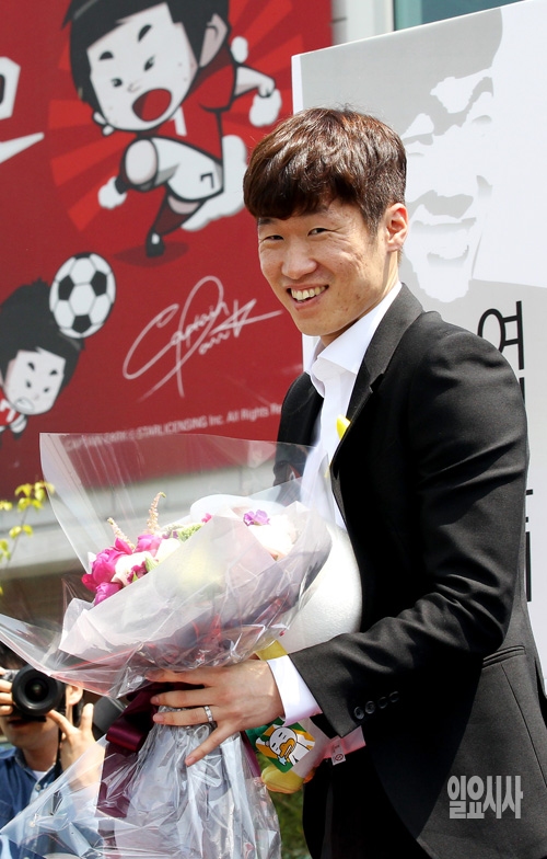 '영원한 캡틴' 박지성이 14일 경기도 수원 박지성축구센터에서 공식 은퇴 선언 및 김민지 아나운서와의 결혼계획 기자회견을 갖고 있다.