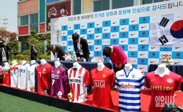 '영원한 캡틴' 박지성이 14일 경기도 수원 박지성축구센터에서 공식 은퇴 선언 및 김민지 아나운서와의 결혼계획 기자회견을 마친 뒤 인사하고 있다.