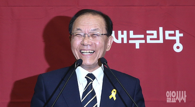 14일 오후, 서울 여의도 국회에서 열린 새누리당 의원총회에서 황우여 대표가 활짝 웃으며 대표직 사퇴 발언을 하고 있다.