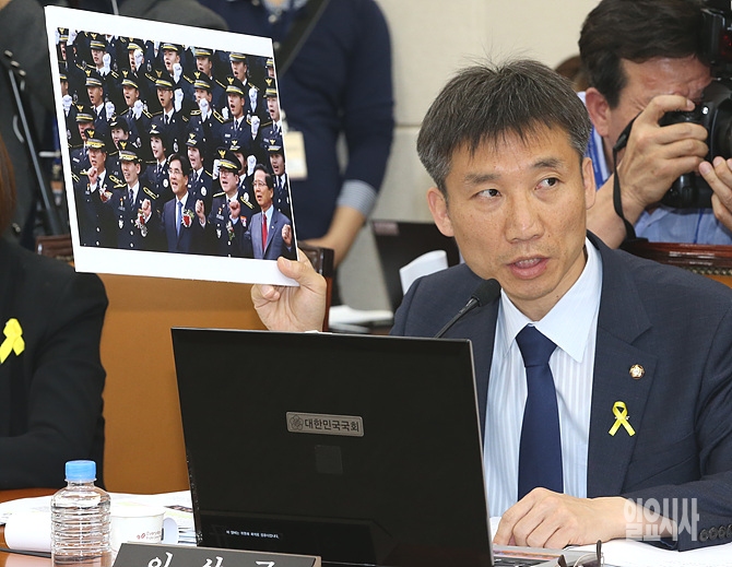 14일 오후, 서울 여의도 국회에서 열린 세월호 대책 관련 안행부 전체회의에서 통합진보당 이상규 의원이 질의 자료를 들어보이며 질의하고 있다.