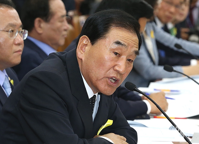 14일 오후, 서울 여의도 국회에서 열린 세월호 대책 관련 안행부 전체회의에서 이재오 의원이 질의하고 있다.
